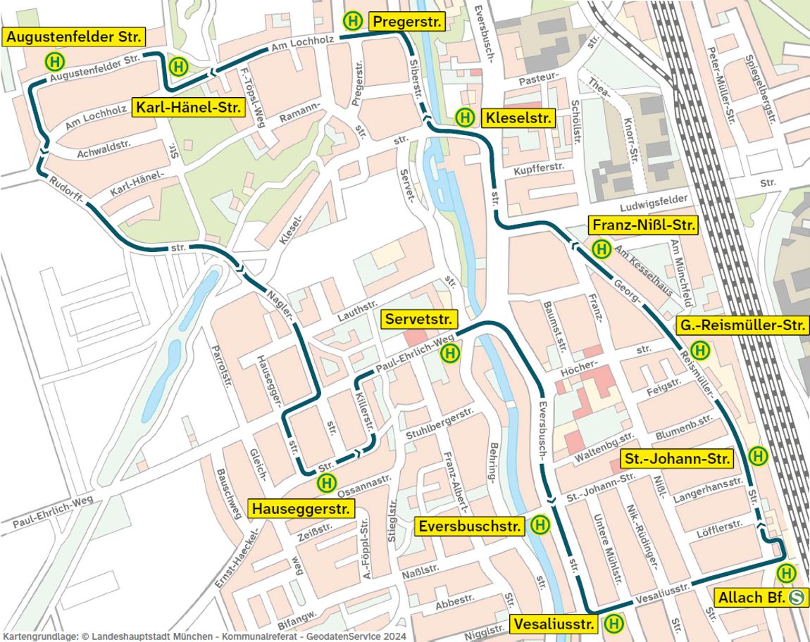 Ab Fahrplanwechsel am Sonntag, 14. Dezember 2025 fahren auf der Buslinie 164 im Abschnitt Allach Bf. > Augustenfelder Straße > Hauseggerstraße > Eversbuschstraße > Allach Bf. Kleinbusse als Ringlinie (gegen den Uhrzeigersinn).
