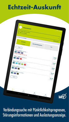 Die 'MVV-App' für Smartphones ist die App für kostenlose Fahrplanauskunft und den Kauf von MVV-HandyTickets. Wie die 'MVV-Auskunft' im Internet bietet die MVV-App schnell und zuverlässig Fahrplanauskünfte, MVV-HandyTickets sowie weiterführende Funktionen und Informationen für Ihre Fahrt mit dem ÖPNV – in vielen Fällen in Echtzeit – und ergänzenden Mobilitätsangeboten (z.B. Bikesharing, Carsharing, Scootersharing). Die MVV-App ist Ihr Begleiter für einfache Mobilität im gesamten MVV-Verbundgebiet.