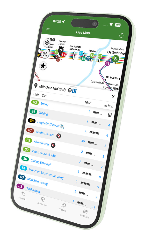 Die MVV-App ist dein Allrounder für den gesamten MVV-Bereich (München & die Region). Du bekommst: