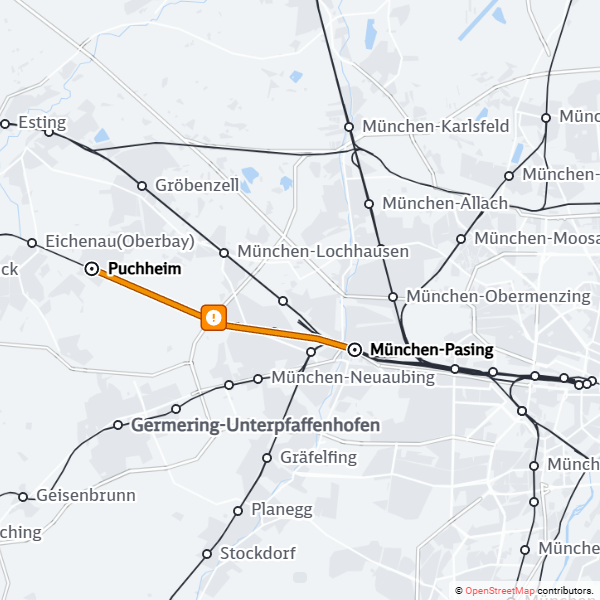 Auf Grund von Instandhaltungsarbeiten kommt es in der Nacht von Mittwoch auf Donnerstag, 6./7. Mai 2026, in der Zeit von 22:00 Uhr bis 2:40 Uhr zu Zugausfällen zwischen Pasing und Geltendorf. Zusätzlich kommt es in Fahrtrichtung Geltendorf zwischen Grafrath und Geltendorf teilweise zu späteren Abfahrts- und Ankunftszeiten.