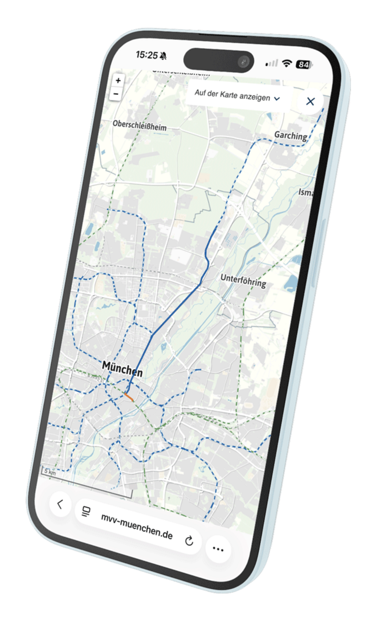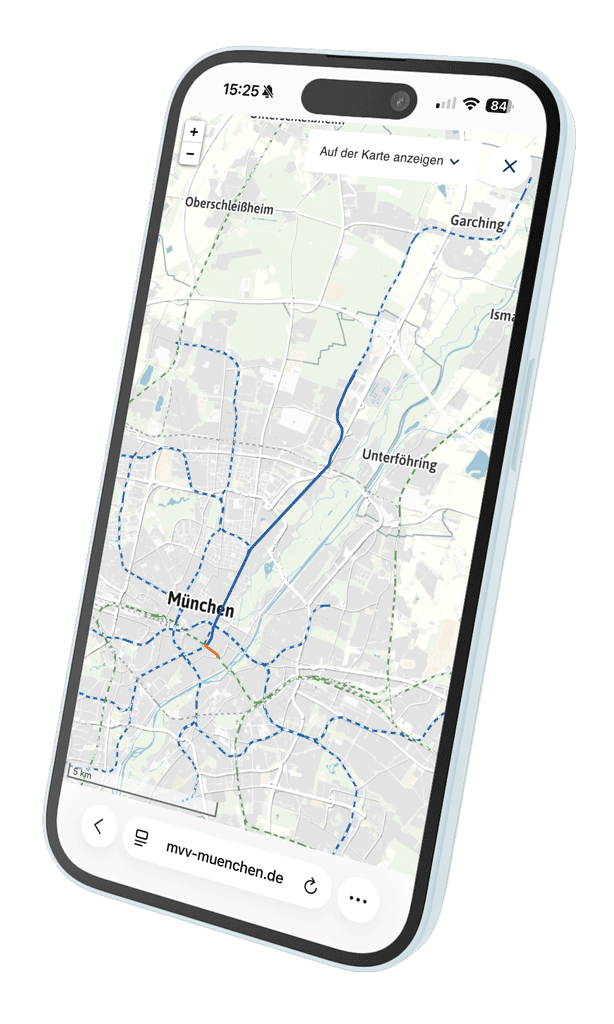 Die mobile MVV‑Auskunft ist ein für unterwegs optimiertes Auskunftsportal und unterscheidet sich von der kartenbasierten Online‑Fahrplanauskunft durch folgende Punkte: