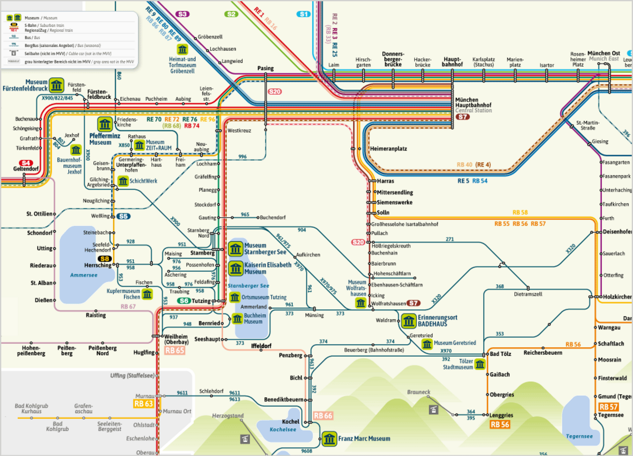 Der MVV und die Landkreise Bad Tölz-Wolfratshausen, Fürstenfeldbruck und Starnberg laden Sie ein, die vielen Museen der Region zu entdecken. Ganz gleich, ob Sie Kunst, Kultur, Geschichte oder Wissenschaft fasziniert – unsere Museumstour bietet das passende Erlebnis.