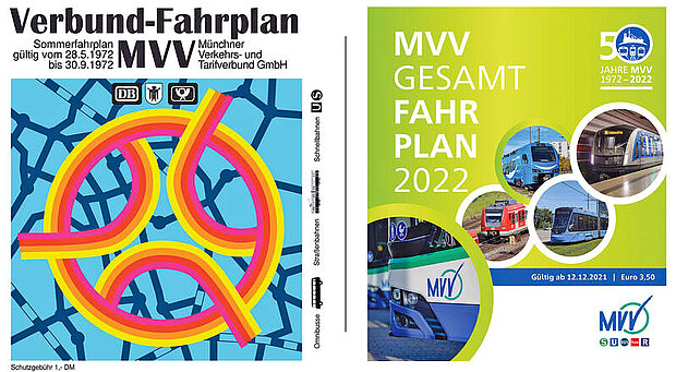 Das Bild auf der rechten Seite zeigt das erste und zugleich letzte „Große Fahrplanbuch“ welches vom MVV für seine Fahrgäste herausgegeben wurde. Es enthielt die Fahrpläne aller Linien, die mit einem MVV‑Ticket genutzt werden konnten.