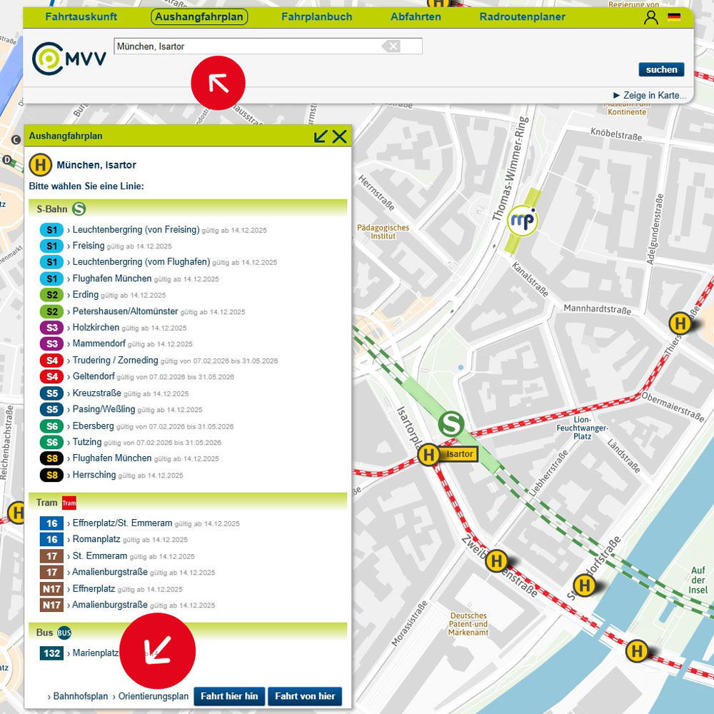 Bahnhofsinfos über die MVV-Fahrplanauskunft und über die MVV‑Partner