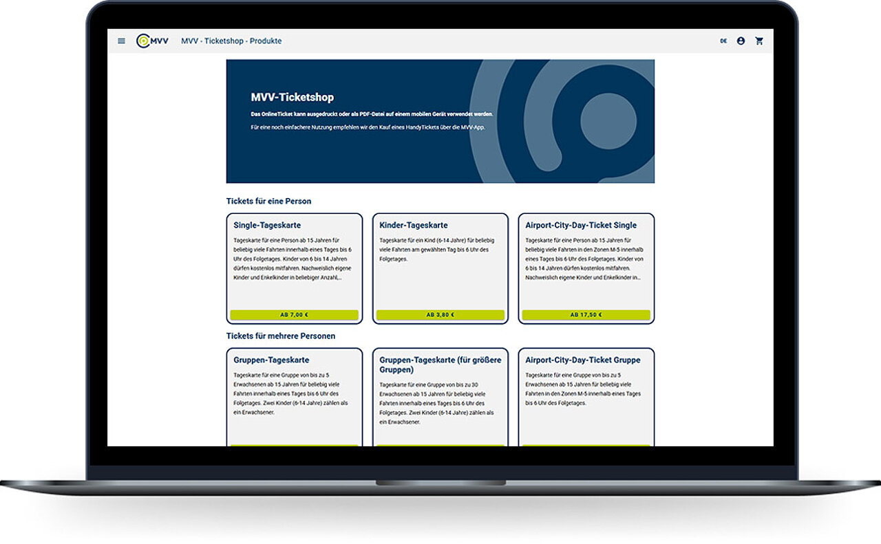 - Über die MVV‑Website gelangt man zu verschiedenen Ticketshops wie dem