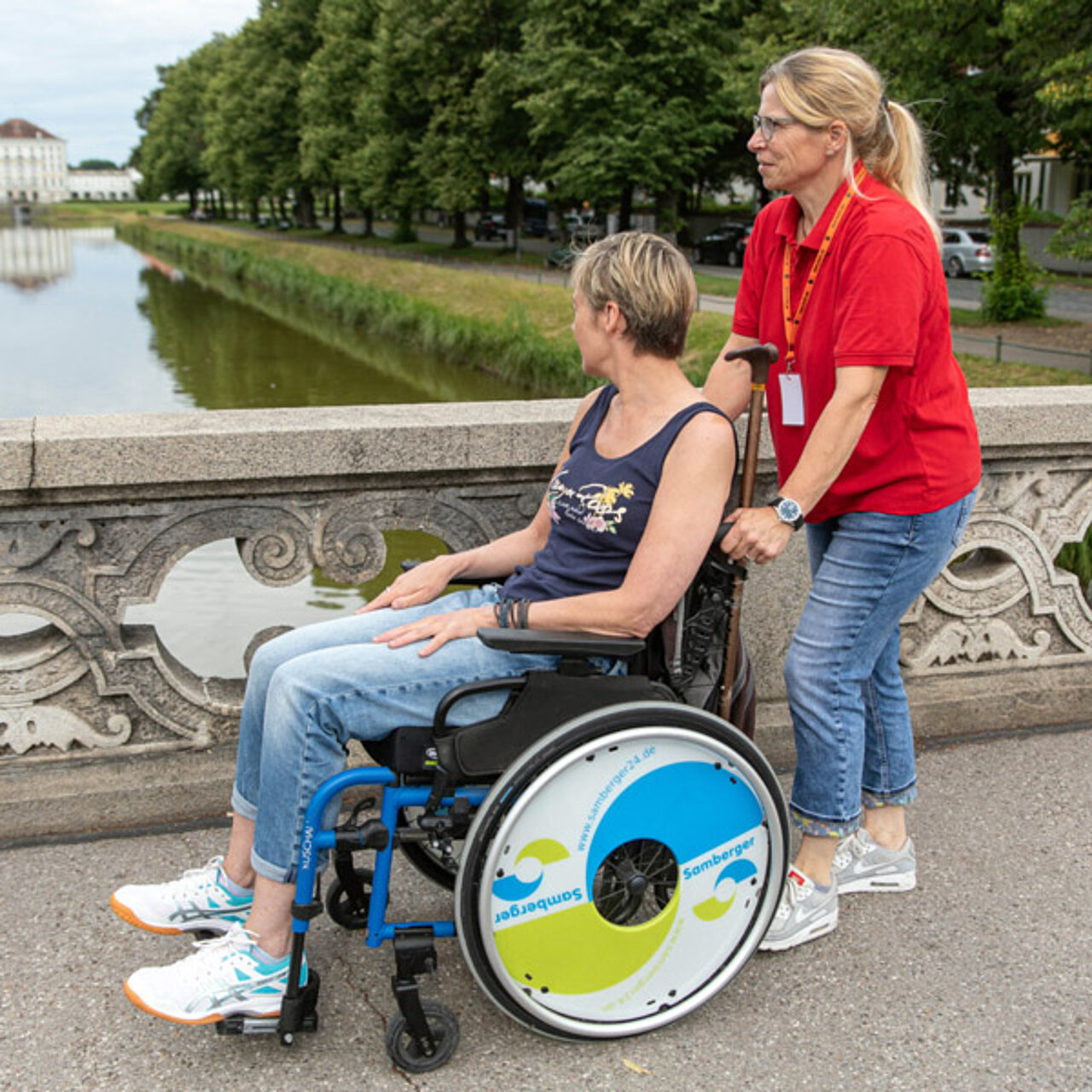 - Während der Begleitung unterstützen sie beim Fahrkartenkauf, schieben Rollstühle, stützen gehunsichere Personen oder führen sehbehinderte und blinde Menschen.